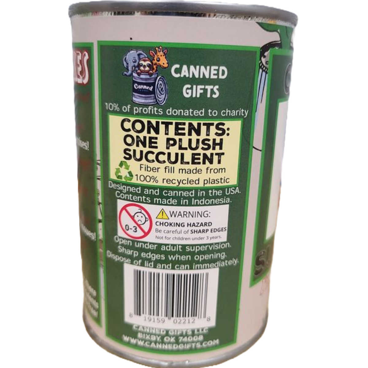 • Plush succulent sealed in a can. Use a can opener to open the fun gift or choose a pop top lid!